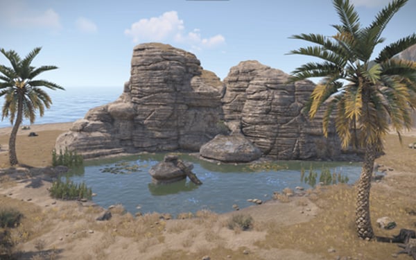 Each of these small oases features drinkable water and designated buildable areas. If you prefer to restrict building in these areas, simply use the "Prevent Building Sphere" in RustEdit or apply "Zone Manager."