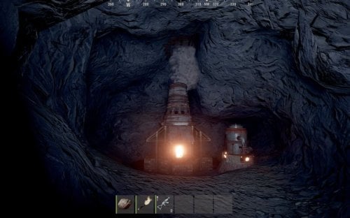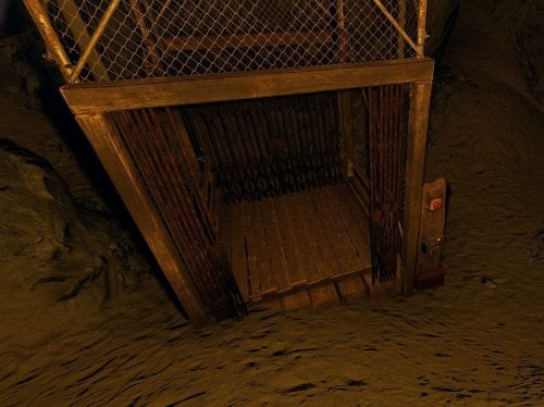 Dual cave with elevator access. Smart switch at the bottom to deactivate the elevator. Furnace and refinery in side-cave.