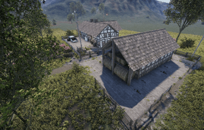A beautiful farmhouse in the style of German estates. It includes a kitchen, a workroom, a stable and a barn with a recycler in it. The upper floor is not accessible, but can still be expanded.