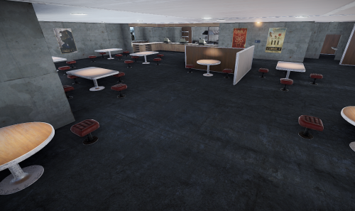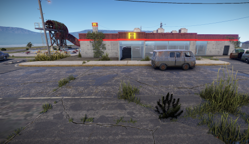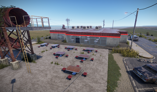 A typical fast-food restaurant where all your daily killing needs are fulfilled. Much the same as most of your local Fast-Food drive through's places with plenty of seating and entrance points, cover areas to allow patrons exchange healthy death blows. There is a management area, with changing room, office and warehouse for the storage. The main loot is a Red Card puzzle and the loot is two military boxes and a small mixture of mixed loot around the monument.