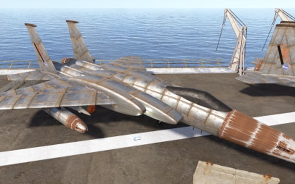This model is a rebranded F-15 by Cobalt, inspired by the jets seen flying overhead at the end of wipe. It is ideal for placement on airfields or within custom monuments.