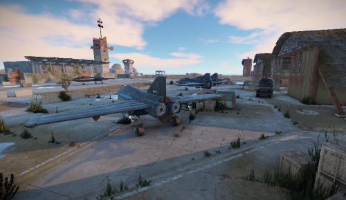 Here comes the fighter jet (K 50). He makes every airfield more interesting. There is no loot in it and unfortunately you can't fly with it either, but you can put loot on the sides.