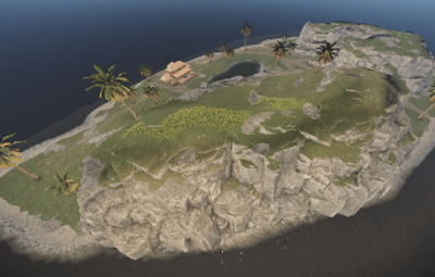 In this package you will find an island as a prefab which you can add to your map at a height of 480. On the island is a finca and a small cave. A waterfall creates a nice atmosphere. There is no loot to be found.
