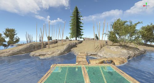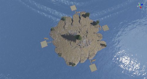 А floating island under construction with 4 berths. It does not require the use of prefab modifiers.