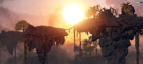 Island Floating A1 - Small island with built in lake and waterfall. Water Trigger under the island prevents swimming, can be adjusted for different float heights. Has roots to climb.*