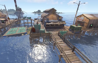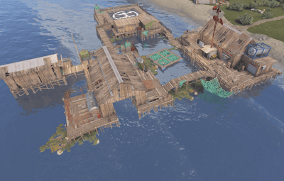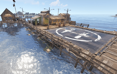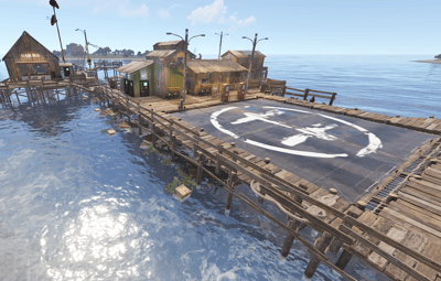 Discover Garage Village, a custom Rust fishing prefab that offers a unique space for customization and commerce. With a heliport, a garage for modifying cars, vending machines, and the option to buy via drones, this prefab is designed for players looking for a peaceful spot to enhance their vehicles and access resources without the chaos of constant action.