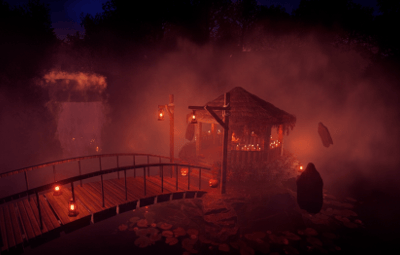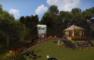 - Мост — соединяющий зону дома и беседку.