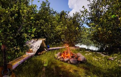 - Кемпинг-лагерь — уютное место для отдыха на природе с палатками и костром.