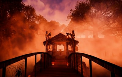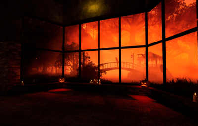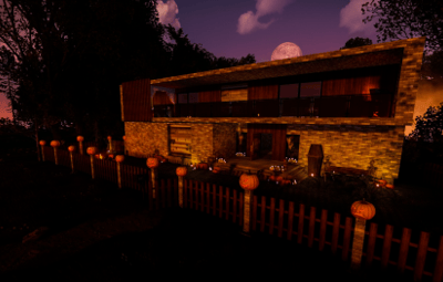 About Halloween version modern house with a garden