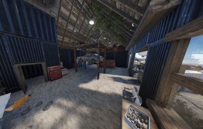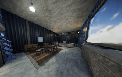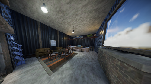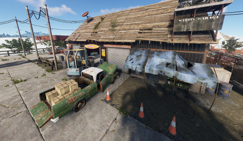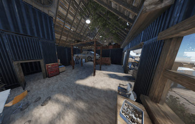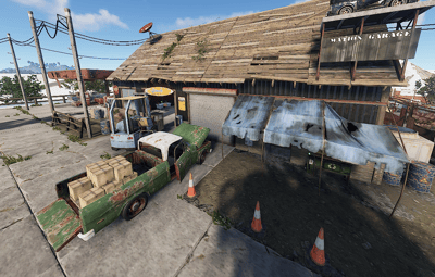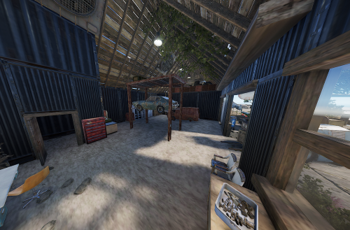 Mation Garage offers A Place Like A Recycle There Comps After Farming Or Looting This Custom Prefab. The buildings have standard loot Like Saide Above, and a recycler With Really Cool Little Spots For Players To Enjoy!