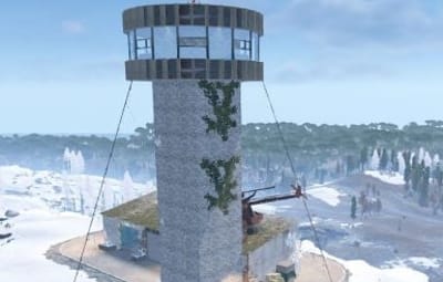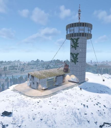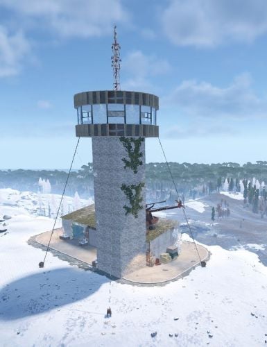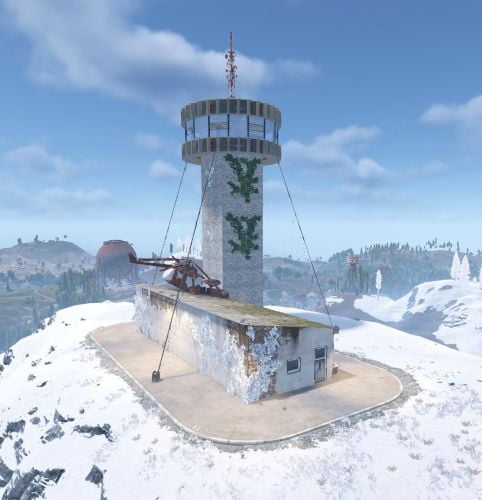 A performance-friendly heli tower prefab designed for custom Rust maps, built to support vertical combat and fast re-engagements. The tower features a 360° viewing level that provides clear sightlines, making it ideal for tracking and engaging the Patrol Helicopter.