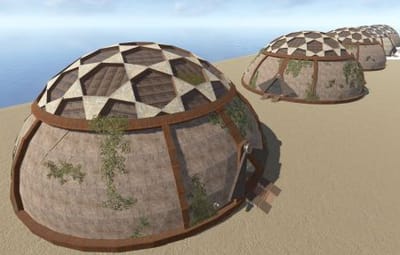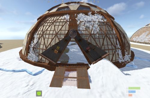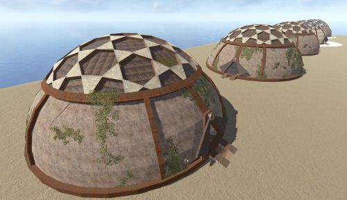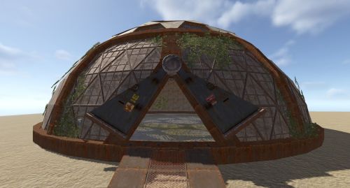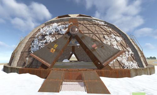 A prefab pack featuring large hemispherical hangar-style monuments, designed as buildable spaces for player bases with a footprint of approximately 10 squares in diameter. Each dome variant (with total of five) offers different entry configurations (up to three entrances) and design options. All prefabs include building prevention volumes to ensure players cannot exploit walls or build through geometry. Perfect for event servers, raidable base spawns, or custom base setups.