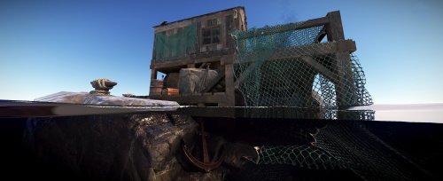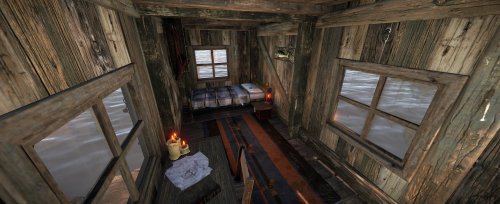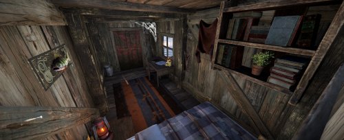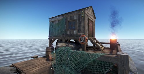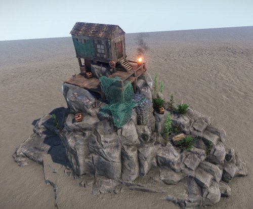 Isolated on a rock, this charming little house has a rustic look and lot details outside and inside. 5 crates (3 underwater) are place around the rock. This house can be use as a shelter or just stay away from the Rust life on the mainland. The rock is included in the prefab.