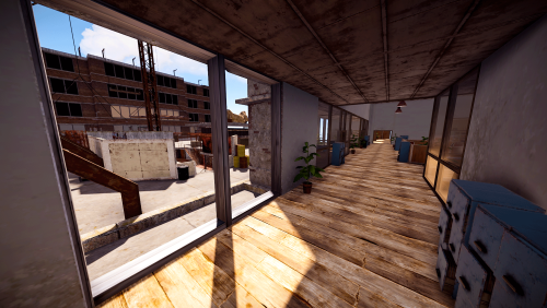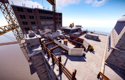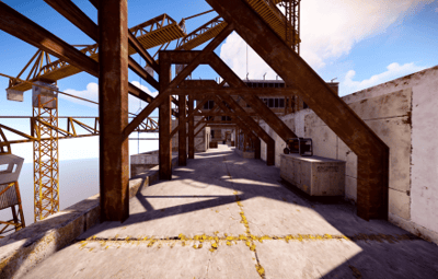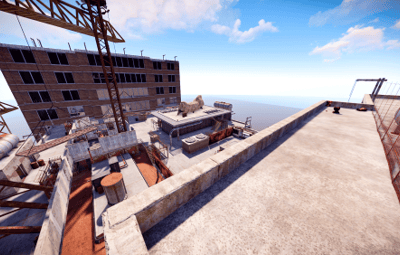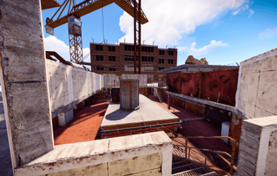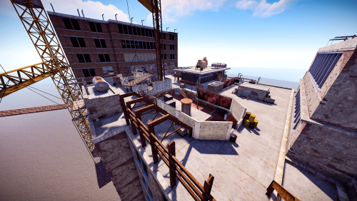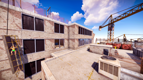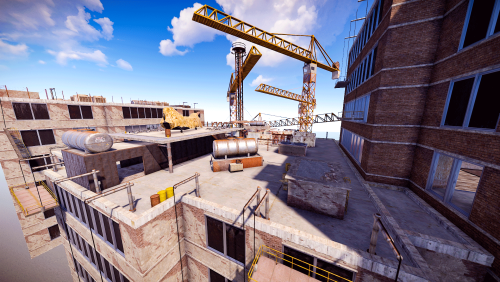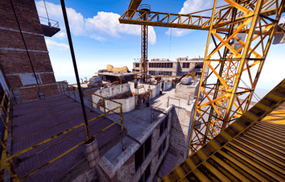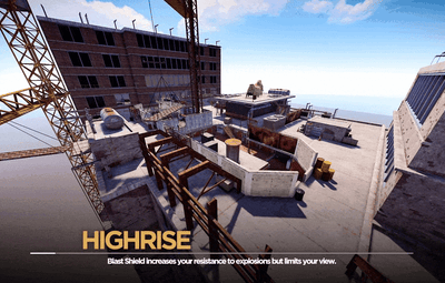 Highrise is set atop a nearly constructed skyscraper with two office buildings on opposite sides of the map. The center of the map is occupied