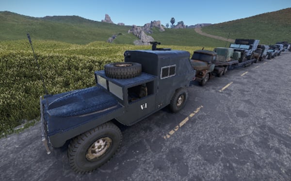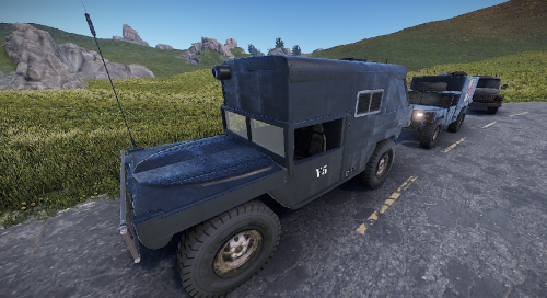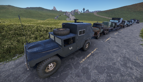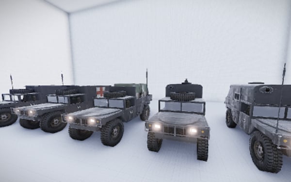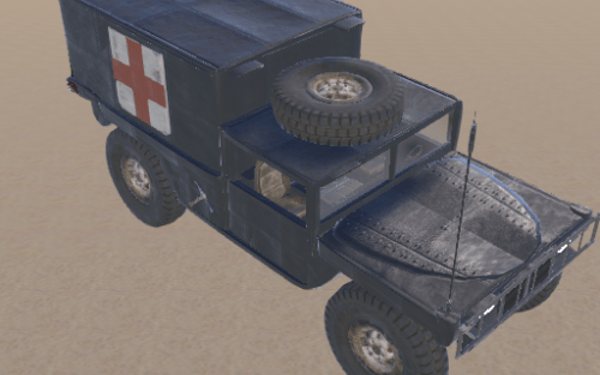 Here comes a collection of several vehicles that can be used for a convoy. the vehicles can also be placed in the field or at a monument. There are five different Humvee. For material, medics, transport, combat and a closed.