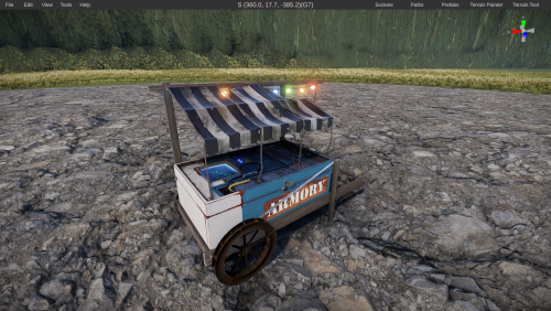 An ice cream cart that can be used for decoration. It also includes a vending machine which is useable.