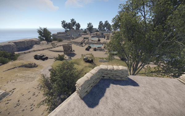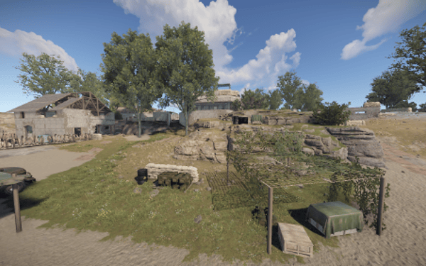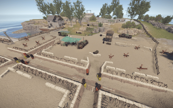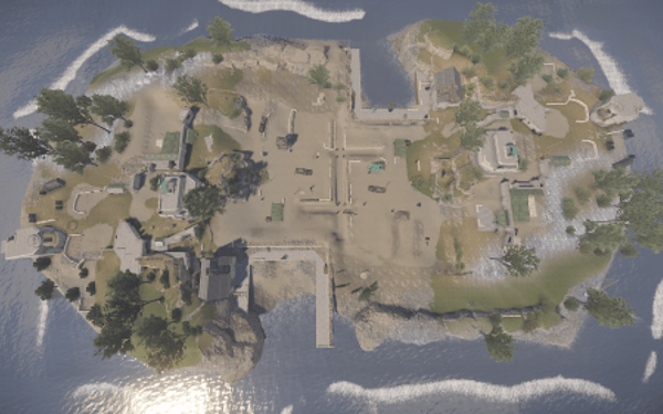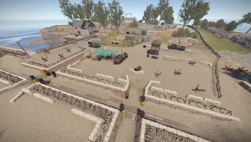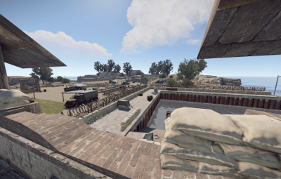 The Arena is based around a Harbor with a central bunker location and trench's in front. There is a slight slope leading to the trench's with different types of cover.