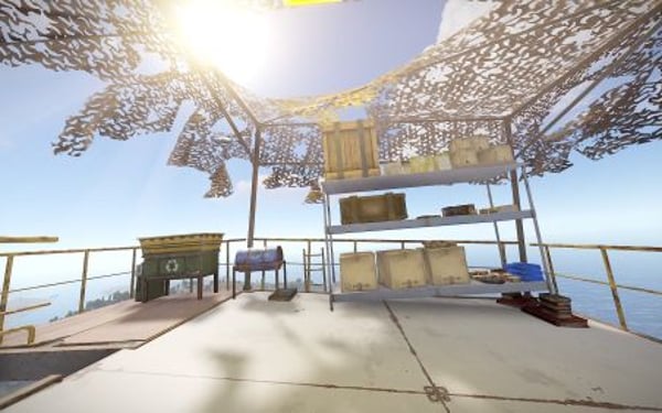 At the very top there is a space with a lootable area with crates that you can customize in your own way.