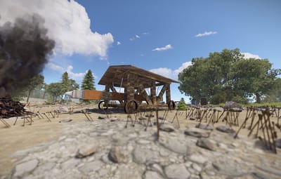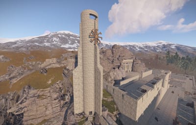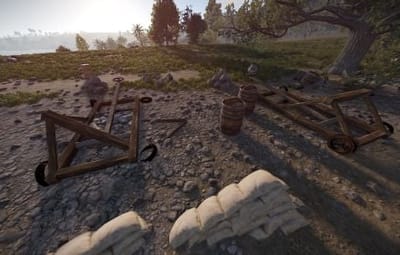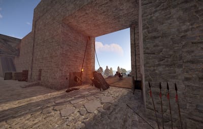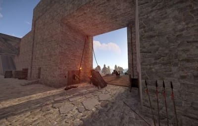 Custom models of siege weapons are used in the location.