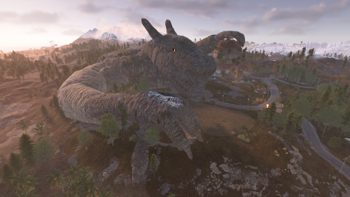 The Tatzelwurm emerged from a mountain cave after a centuries long sleep looking for food to try and sate its ravenous hunger. The only thing to stop it and turn it to stone was the strange copper dome it touched. A great addition to any Halloween styled map. Explore the depths of its belly to see what loot it contains.