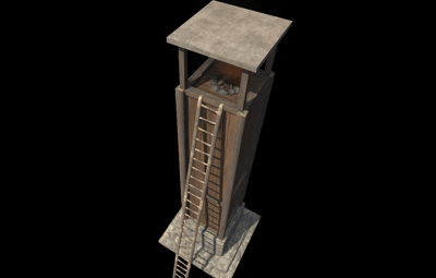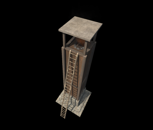A simple medieval-stylized tower which bears a "torch", in the form of a campfire on the top for added aesthetics.