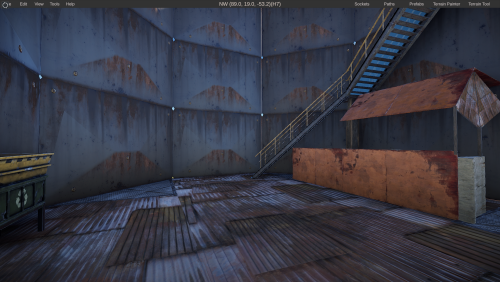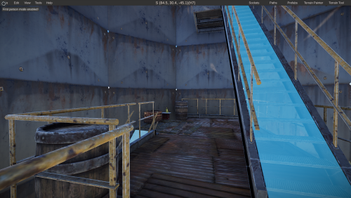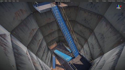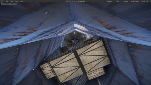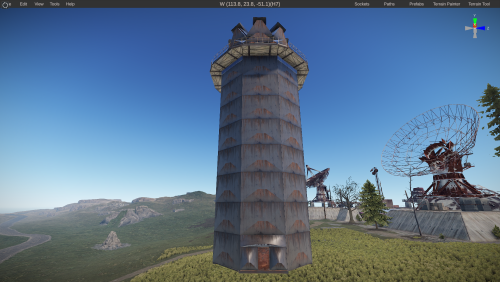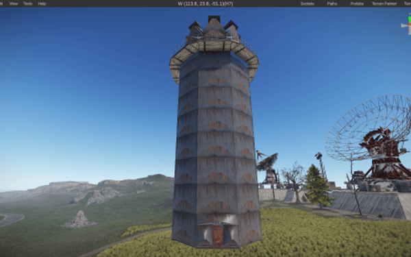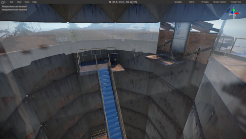 A strong metal tower with bullet proof windows at the Top, inside is barrels, crates and a recycler.