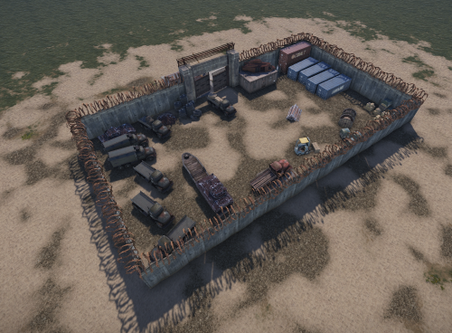 Little military storage yard custom prefab, all terrain modifiers have been added and Monument topology.