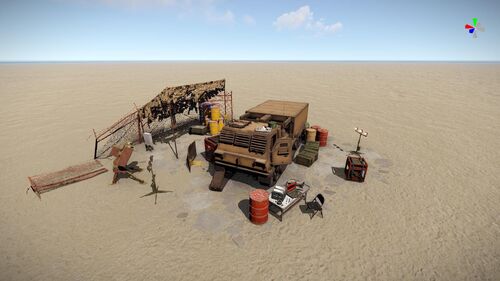 MLRS Outpost with multiple crates with loot and heavy scientists. There is a point for dropping cargo with a Chinook, and a locked crate from the oil rig in which from 1 to 6 MLRS Missiles and with some chance an MLRS Guidance Module spawn.