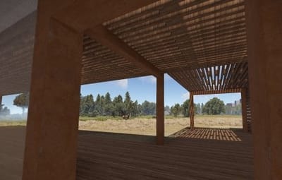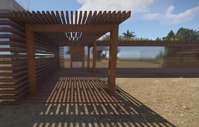 The modern roof offers nice shade and through the wooden slatted walls you can always see what's happening around.