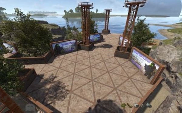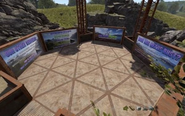 The lobby consists of two hexagon areas surrounded by multiple signs that you can apply your brand or advertisements onto, each sign is encased in glass to avoid other players from editing them.