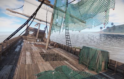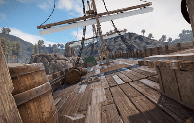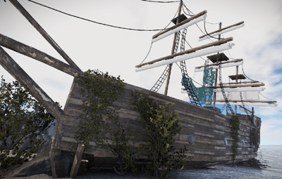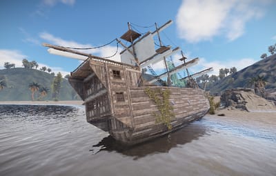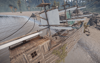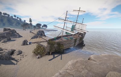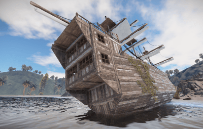 A pirate ship that ran aground on a rock. You can climb up the side. Loot can be found inside.