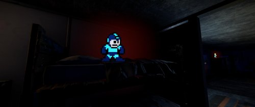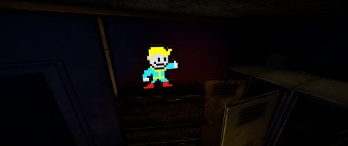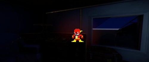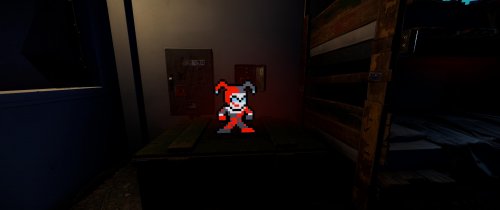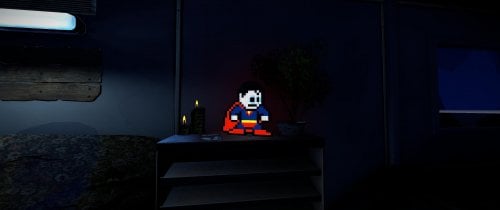 Decorative pixelart objects with a slight red glowing effect in the dark.