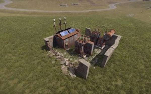 -Hydro Electric Dam- (253 entities) Place on any river, stream, lake? Once you are happy with placement, BREAK PREFAB, players can then enjoy power fed directly into the battery located inside the electrical building. Contains a few barrels and a crate to loot as well.