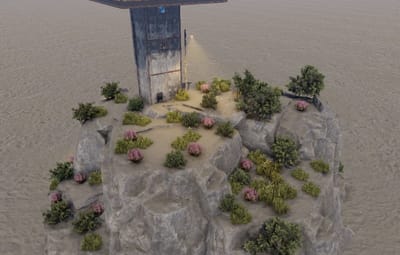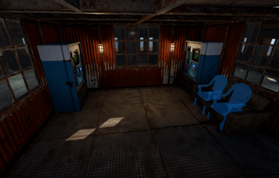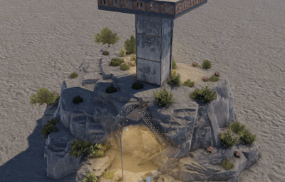 It is has two Vending machines It is setup with one with m249, explosive ammo, rocket launcher, and high velocity rockets. The second vending has Bandages, Large Medkits, and healing tea.