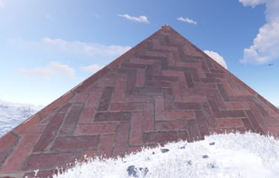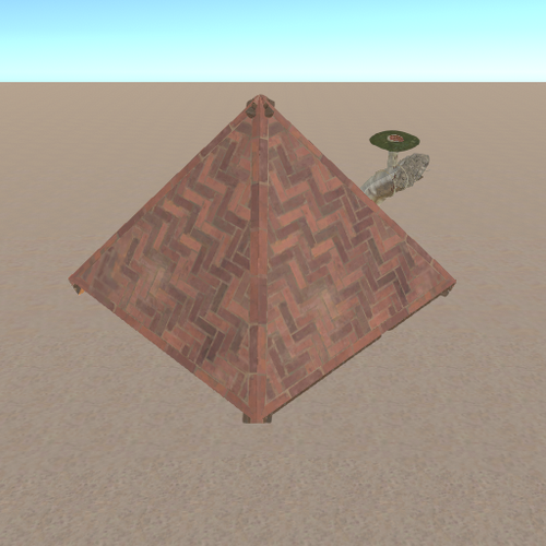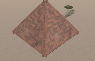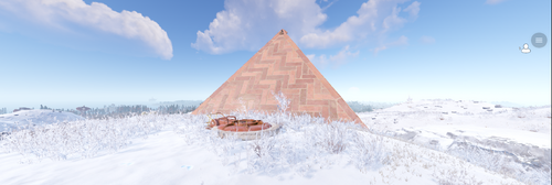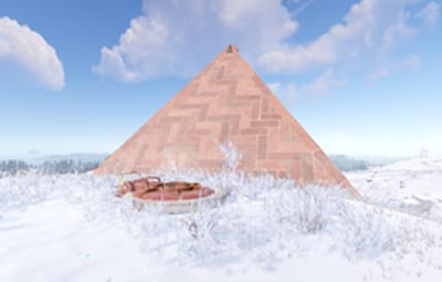A pyramid base with a hidden entrance. Contains 3 large furnaces.