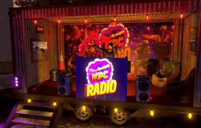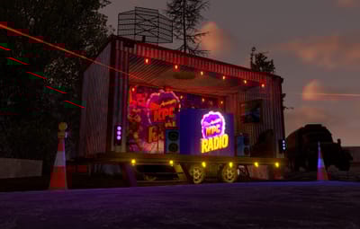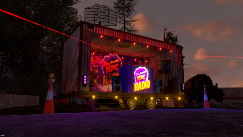A small pop-up Radio Station built inside a shipping container on the back of a trailer. 83 prefabs total, no masks included.