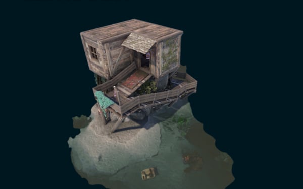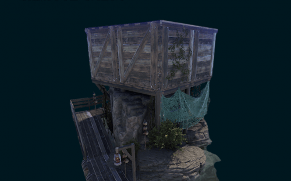 This prefab is a small pirate cabin built on a cliff in the ocean. This prefab is only the model and does not include any terrain, biome or splat modifiers. Here's what you can expect to get: