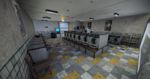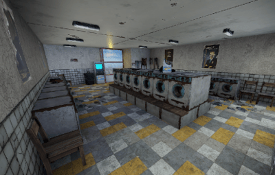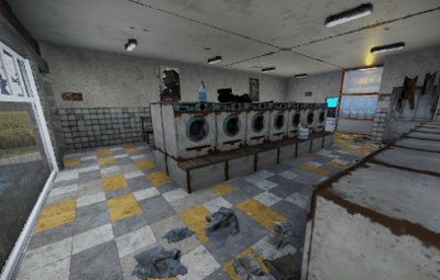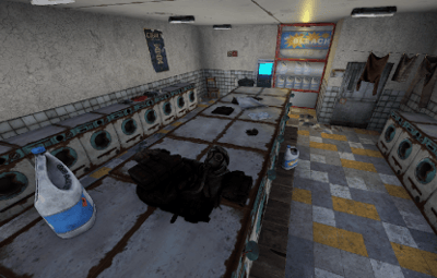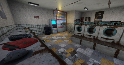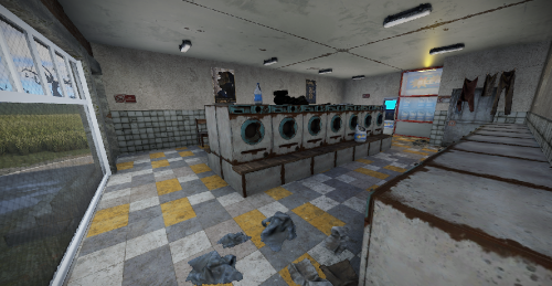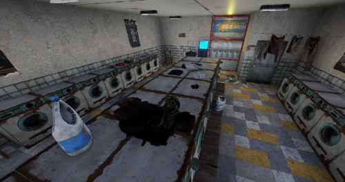 With the Rowhouse Bleach, a laundromat is coming to town. Inside there are many washing machines and a bleach vending machine, which unfortunately no longer works. Someone must have done the laundry. But there is no loot to be found.