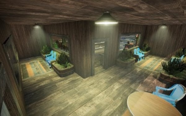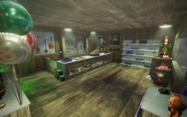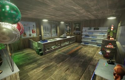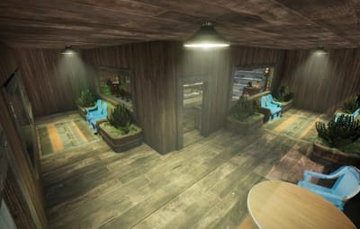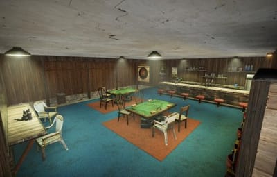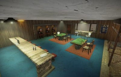 ...1 bank... ....1 Food shop.... ....1 Shop.... ....1 Hang out casino.... ....1 Skin shop/Buy skin shop.... ....1 Heli pad/computer room.... ....1 Camp sitting area....