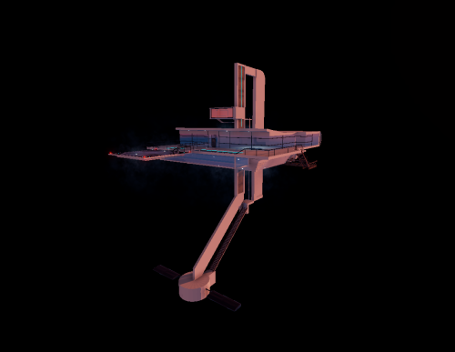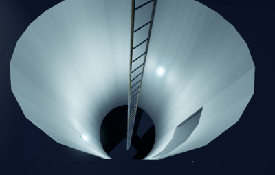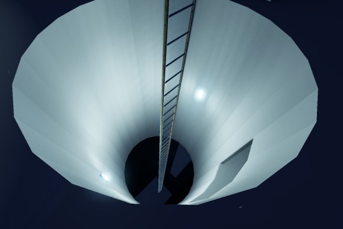 - Long ladder leading to the lowest base pad, with a great view from the sky.