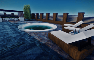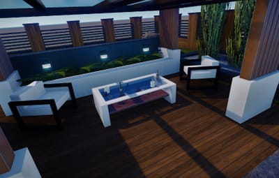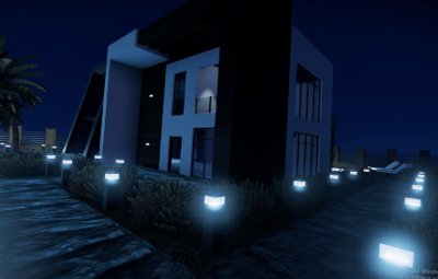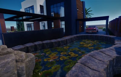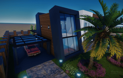 It contains a spacious, beautifully landscaped garden, swimming pool, parking space, and inside unfurnished 2 bedrooms, a bathroom, and a living room with an open kitchen. Please contact me if you find any kind of bug in this prefab or have any kind of suggestion, I will answer with great pleasure and I will try to fix it as soon as possible. You can also contact me on discord Turcu' #6178 for any kind of problem, question or prefab request (with extra charge).