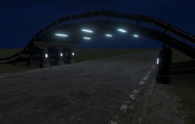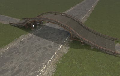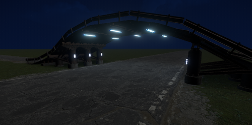 Traversable overpass with underpass lighting. Fits perfectly over the RustEdit default road size. Guardrails keep vehicles from running off the edge.