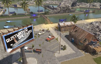 Introducing Rustwater Raceway, a racetrack for rowboats, rhibs, and Karuza's Custom Vehicles!