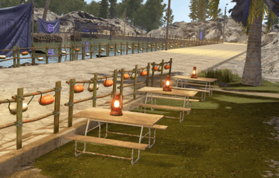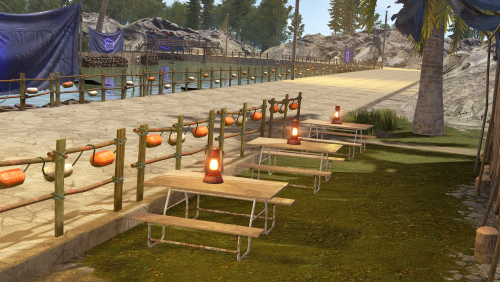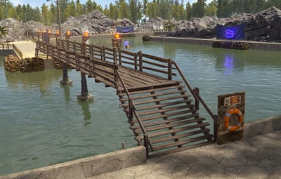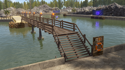 The buildings have no vendors, leaving space for other plugins to add vehicle vendors to spawn boats/hovercars on the track.