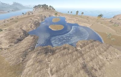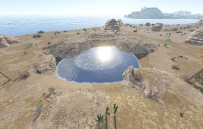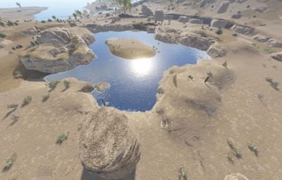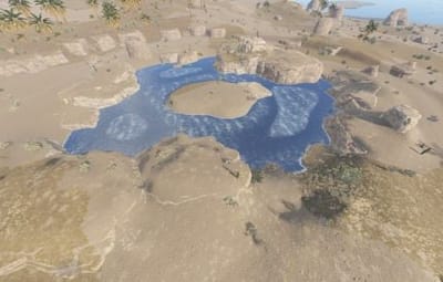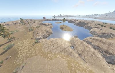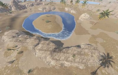 A collection of 4 Oases. Trees and decor spawn using the topology in game to reduce prefab count.