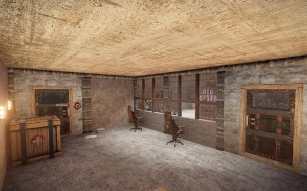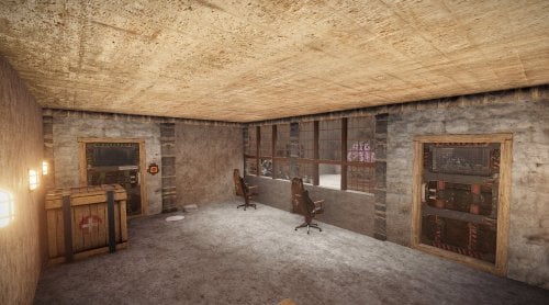 this is a bank prefab. it has 3 samsites, 5 watchtowers, 1 red keycard reader to get behind the counter.