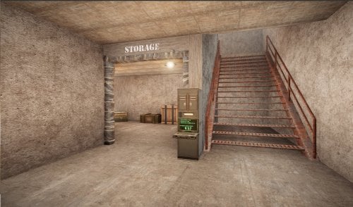 there is loot behind the counter and downstairs at the vault. and you cant go out the way you came inn you have to go out trough a sewer hole entrance and all the doors are one way only and only the 1st door require fuse and a red keycard to enter.