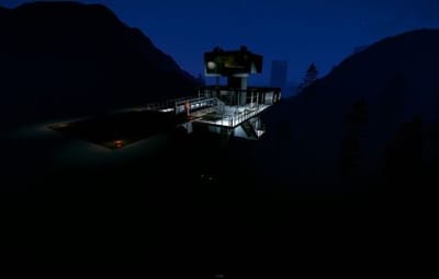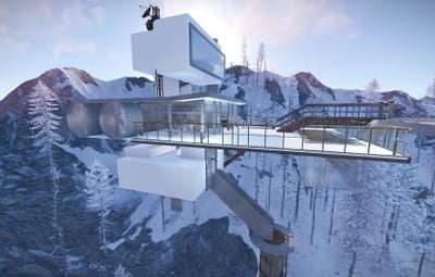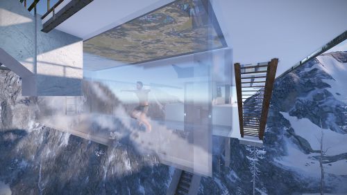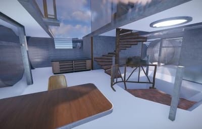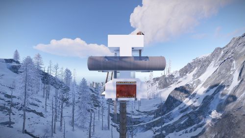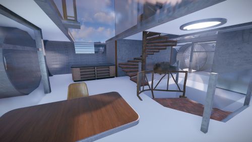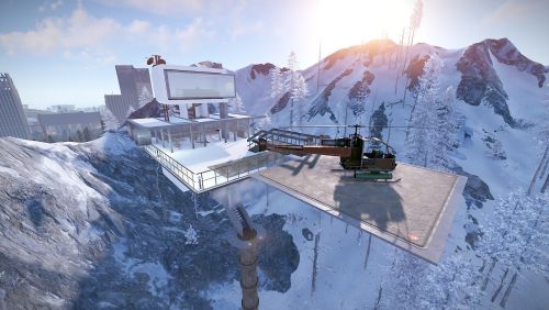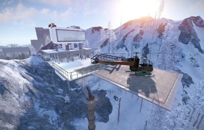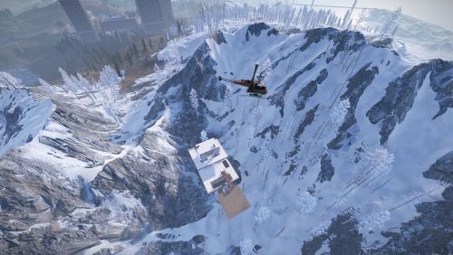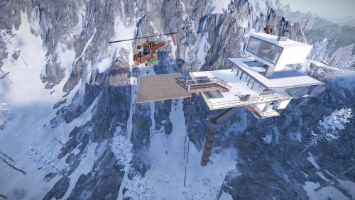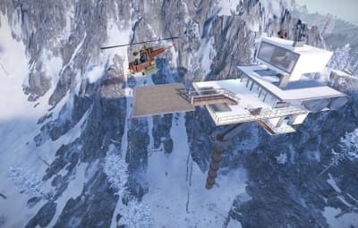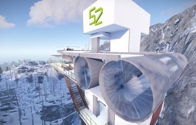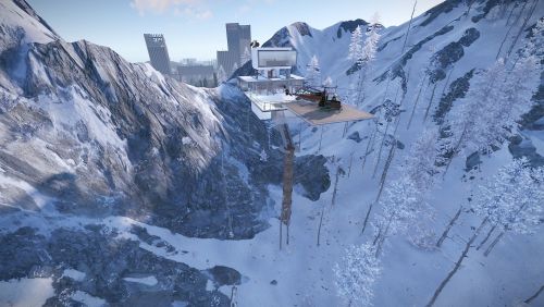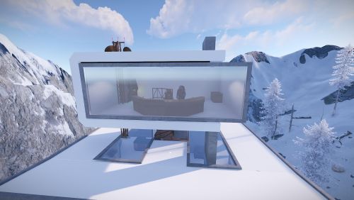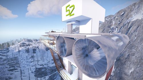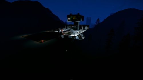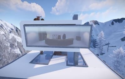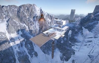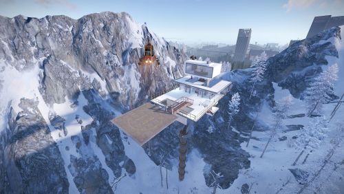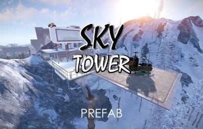 This is the Sky Tower as portrayed in the film Oblivion, unfortunately you cannot build within it but you can defend and it comes with an attack helicopter. Inside you will find workbenches and a vending machine selling fuel. Bring your own Ammo. You will also find a clear see through swimming pool so no skinny dipping.