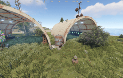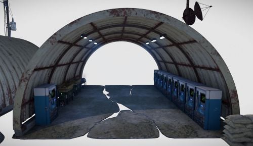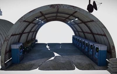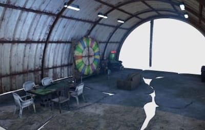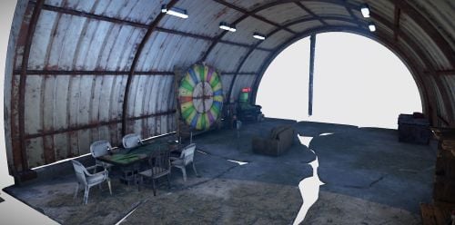 This is a small custom Outpost which contains a gambling wheel, black jack, and poker table. All the default vending machines are here and there is also an oil refinery.