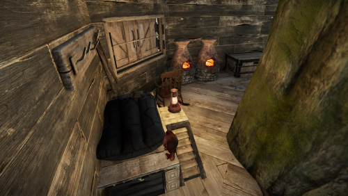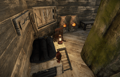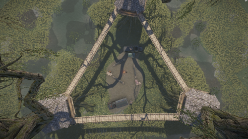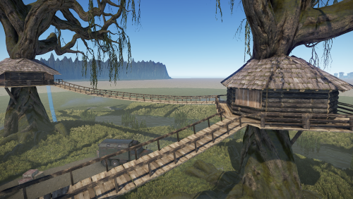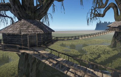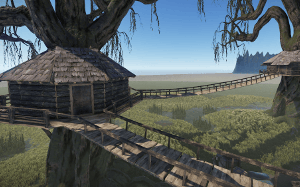 A very small swamp treehouse village, although the houses are the same from the outside, the inside of each one has unique decoration.